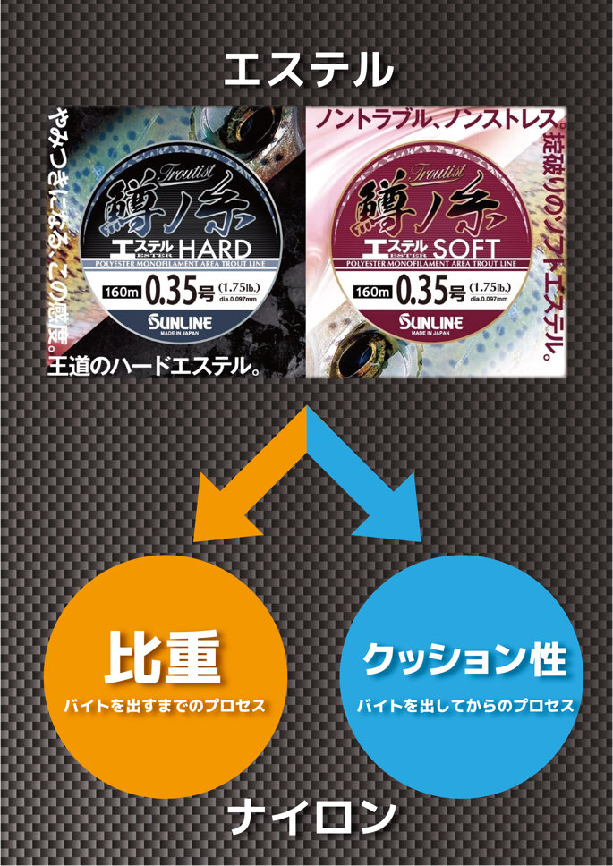 もちろんエステルラインでできる事って、とっても多いんです。でも魚との接点が多いエリアトラウトの世界では「こうやったらもっと良いかも?」というワガママな部分も身近なところで出てくる訳です。