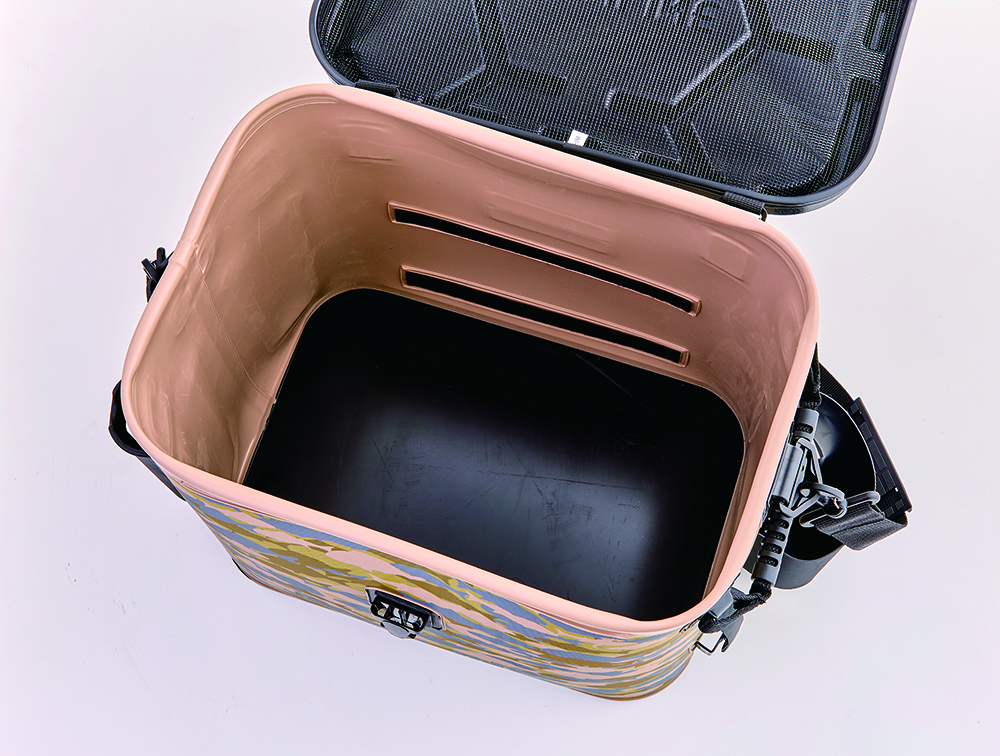 ペットボトルや小物を収納できるマルチホルダー、プライヤーホルダー、ロッドホルダー(2本分)、内部仕切り版付き。