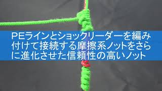PEラインにリーダーを編み付けるため、FGノットと比較すると結び目が大きくなるが絶対的な強度を誇る。
